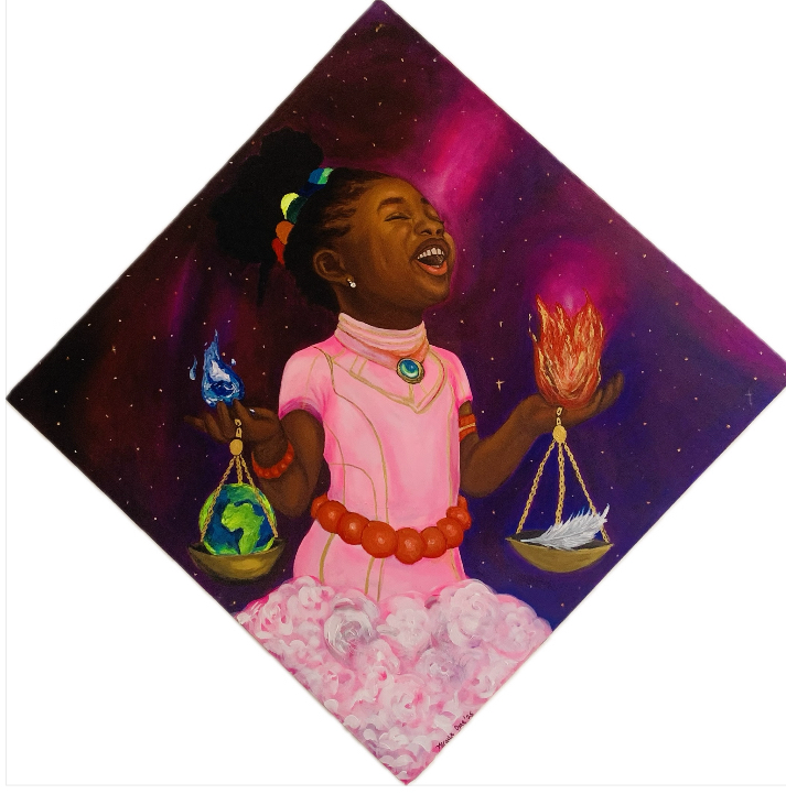 This artwork explores the human capacity to rule, create and multiply while holding power with humility and a child like soul.