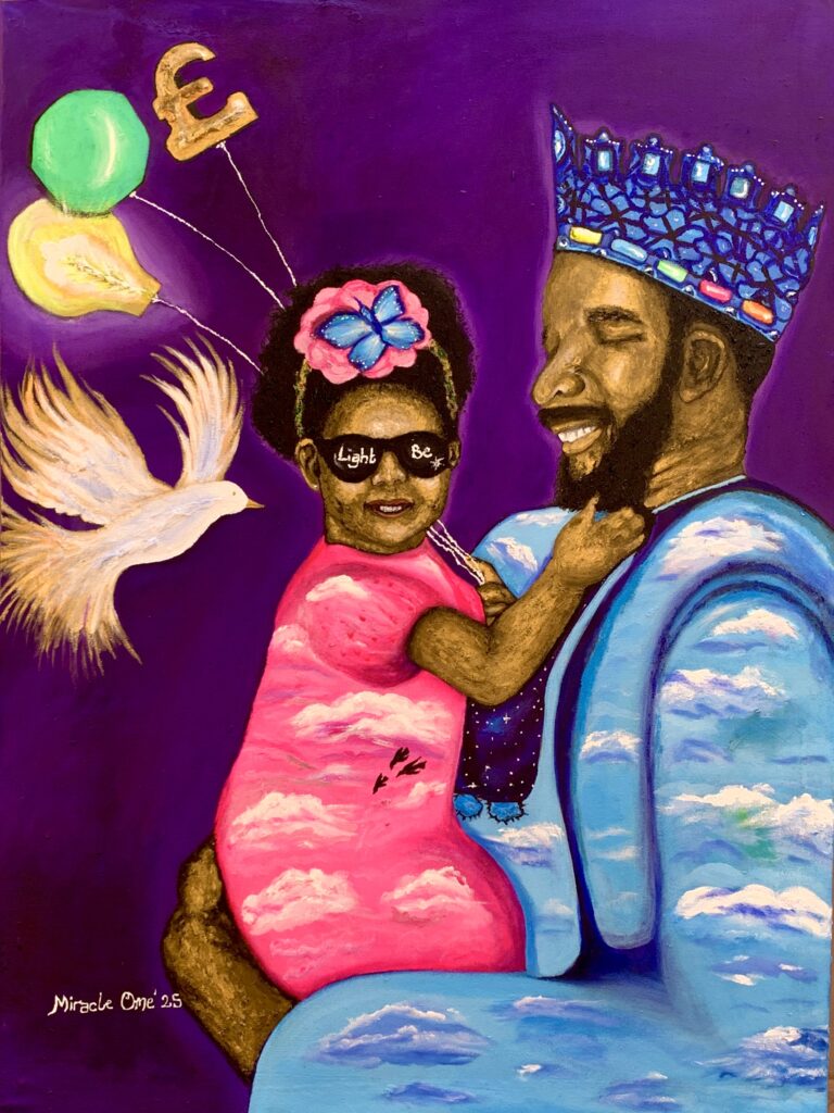Miracle Ome is a self-taught Nigerian eco-friendly artist based in the peaceful city of Abuja. Her evocative work has gained attention locally and internationally, featuring in exhibitions like the Argentine Embassy Exhibition in Nigeria (2022).