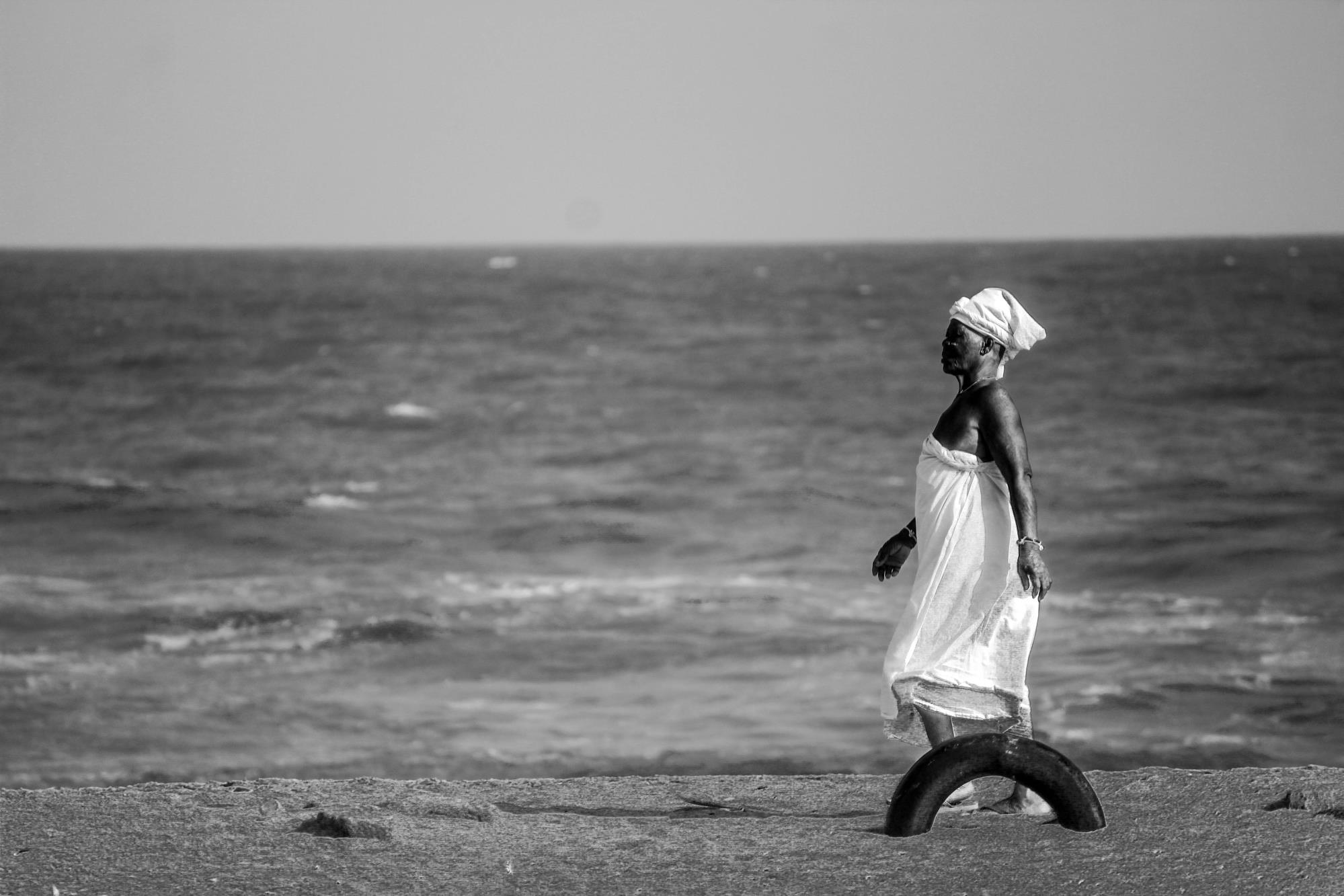 A water priestess walking away after performing spiritual rights early hours of the morning. Ancient Badagry 2021.